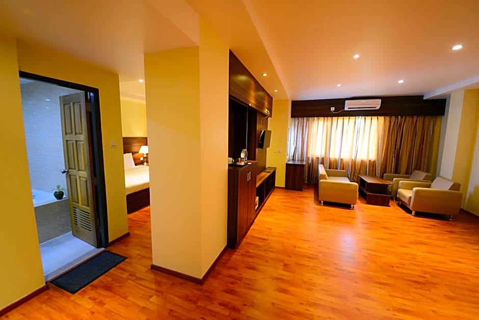 Featuring a separate living room with a sofa and a flat-screen satellite TV, this spacious unit comes with cozy bedroom and an private bathroom, which is supplied with a bathtub, slippers and free toiletries.